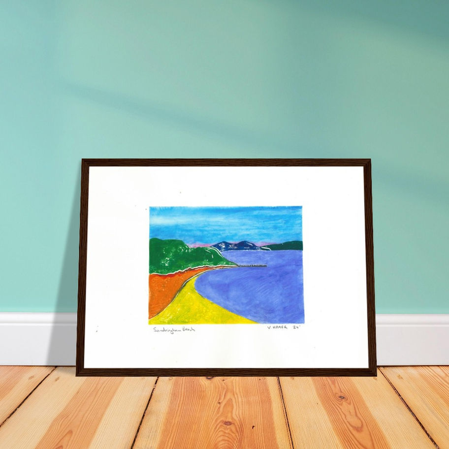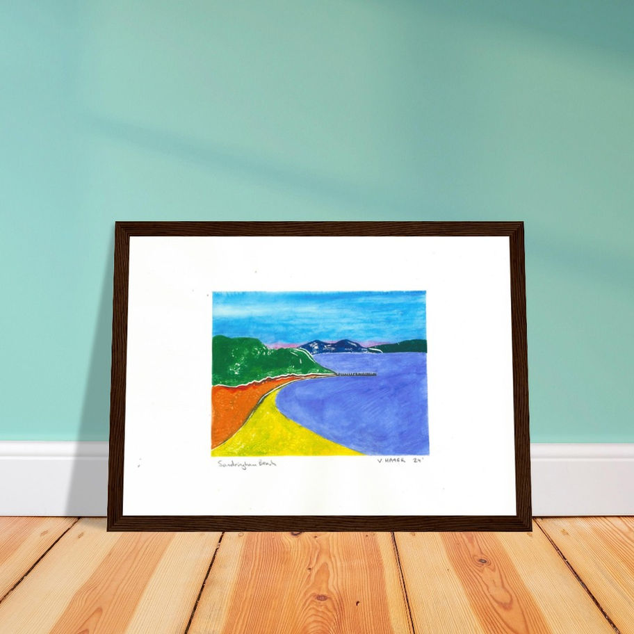 Our sturdy wooden framed posters are printed on heavyweight white matte paper with a smooth, luxurious finish—designed to stand the test of time: Ready-to-hang: Includes hanging kit, ready to hang directly on the wall. Frame Material: Durable pine wood. Frame Measurements: 20-25mm (0.79"-0.98") thick, 10-14mm (0.4"-0.6") wide. Paper Weight: 200 gsm (80 lb), thickness: 0.22 mm (8.7 mils). Paper Finishing: Matte, smooth, non-reflective surface. Protection: Shatterproof plexiglass protects the poster. Sustainable Paper: FSC-certified materials or equivalent. Available Sizes: 15 sizes in inches (US&CA) and cms (rest of the world).Learn about paper types and their unique textures and finishes here.No minimum orders, printed and shipped on demand.