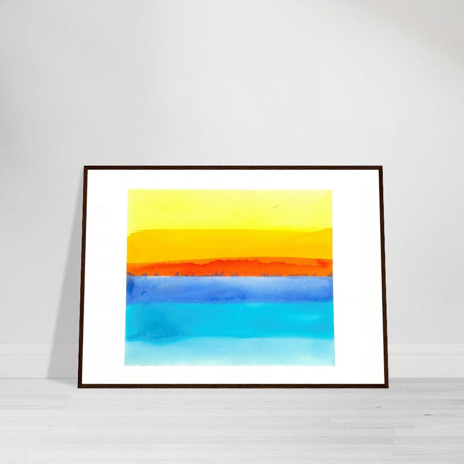 A fine watercolour print by Vaughan Hager.Our sturdy wooden framed posters come ready to hang and are printed on heavyweight white matte paper with a smooth, luxurious finish—designed to stand the test of time: Ready-to-hang: Includes hanging kit, ready to hang directly on the wall. Frame Material: Durable pine wood. Frame Measurements: 20-25mm (0.79"-0.98") thick, 10-14mm (0.4"-0.6") wide. Paper Weight: 200 gsm (80 lb), thickness: 0.22 mm (8.7 mils). Paper Finishing: Matte, smooth, non-reflective surface. Protection: Shatterproof plexiglass protects the poster. Sustainable Paper: FSC-certified materials or equivalent. Available Sizes: 15 sizes in inches (US&CA) and cms (rest of the world).Learn about paper types and their unique textures and finishes here.No minimum orders, printed and shipped on demand.